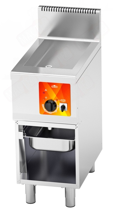 Может выполнять функции сковороды, жарочной поверхности, мармита и пр. Чаша с трехслойным сендвич дном, сумарной толщиной 15 мм. Состоит из листа н/ж 3 мм., стальной плиты 10 мм. и листа н/ж 2,0 мм. Благодаря чему достигается идеальное рапределение температуры, а так же обеспечивается быстрый разогрев и передача тепла от нагревателей к продукту.