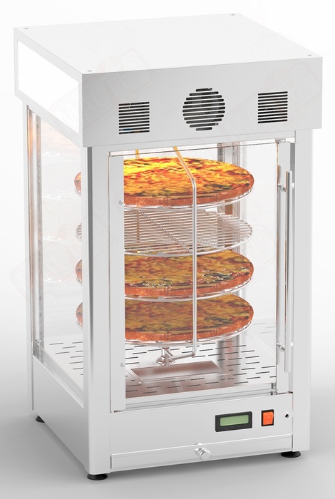 - 4 сьемные решетчатые полки (нержавеющая сталь) на 4 пиццы диам. до 35 см