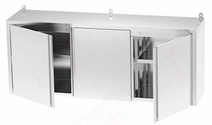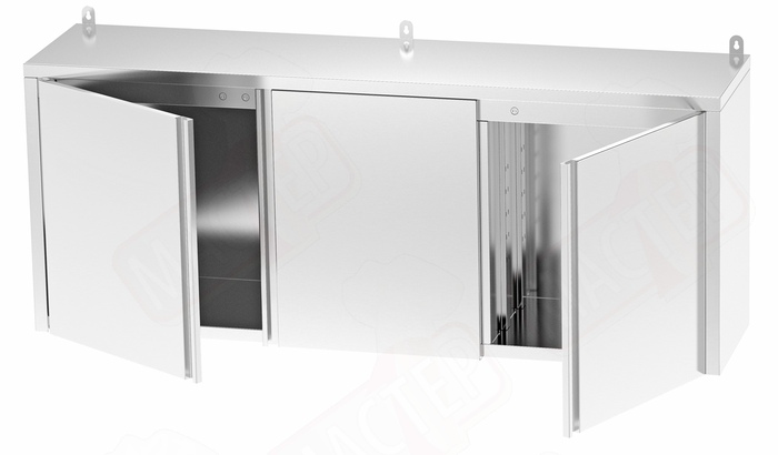 Шкафы навесные WCSW-3 изготавливаются с двумя отсеками. Один отсек имеет двухстворчатую распашную дверь и полку (дно). Второй отсек имеет одностворчатую дверь и полку (дно).