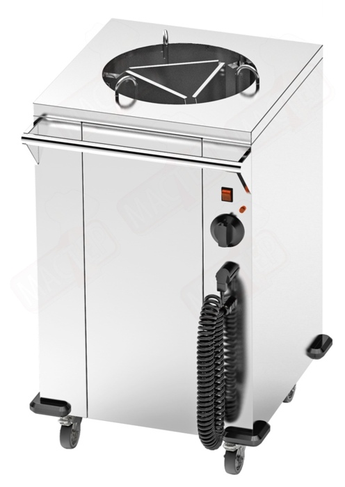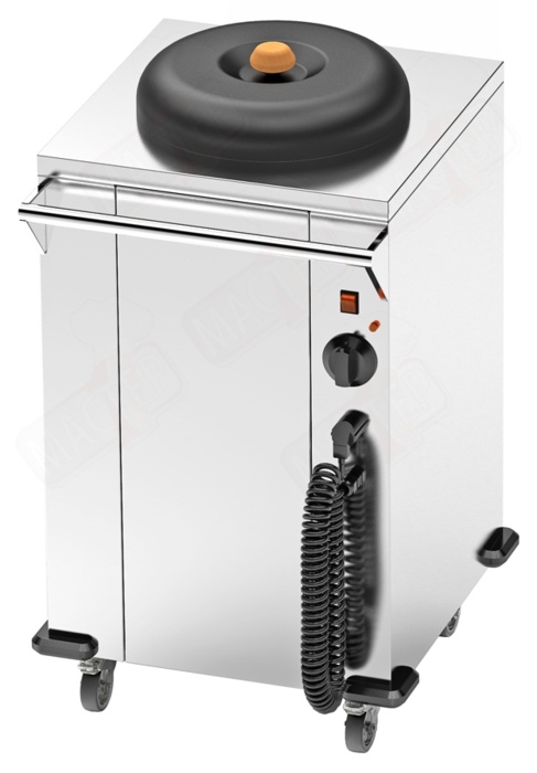 Виготовлений з нержавіючої сталі. Діаметр тарілок – 26-32 см. Тепловий, потрібне підключення до мережі 220 В.